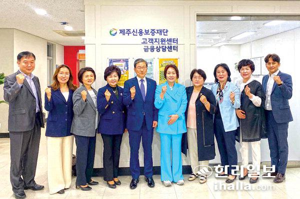 제주신용보증재단(이사장 김광서)은 2일 한국여성경제인협회 이정한 회장과 한국여성경제인협회 제주지회 회원들의 건의사항과 애로사항을 듣기 위한 간담회를 가졌다. 간담회에서는 도내 여성기업인 발굴·육성 등 여성 경제활동 참여 활성화 방안에 대해 논의했다.