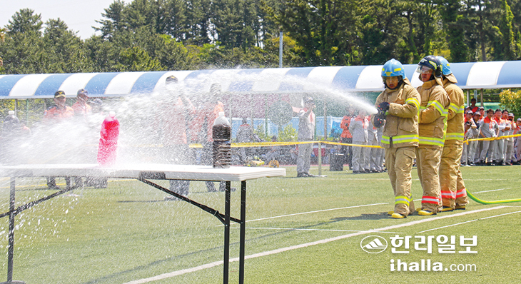 이날 기술경연대회는 도민의 안전을 위해 헌신해 온 의용소방대원들에게 소통·화합의 장을 마련하고 그동안 갈고 닦은 화재진압 및 구급 능력을 평가하는 등 의용소방대원들의 소방기술능력 함양을 위해 마련됐다.