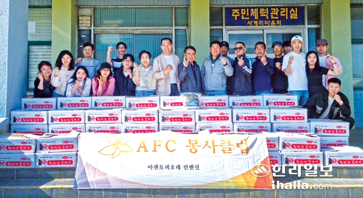 아젠토피오레 컨벤션(대표 강영철)은 서귀포시 안덕면 사계리에 거주하는 70세 이상의 어르신들을 위해 사계리마을회(이장 송정)에 최근 2500만원 상당의 돼지고기를 전달했다.