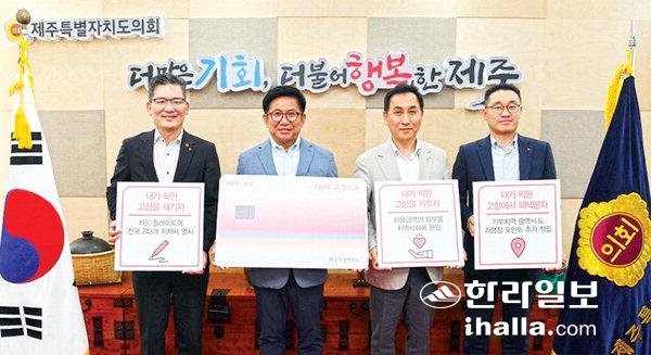 NH농협은행 제주본부(본부장 고우일)는 지난 2일 김경학 제주도의회 의장이 지역경제 활성화에 기여하는 '고향사랑기부제' 특화상품인 'zgm. 고향으로' 카드에 가입했다고 밝혔다.