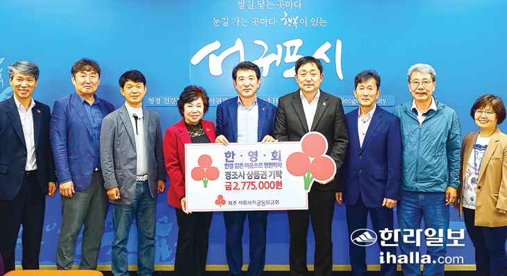 서귀포지역 시민 모임인 한영회(회장 김영관)가 3일 서귀포시청을 방문해 회원들이 십시일반 모아 마련한 경조사 상품권(277만5000원)을 전달했다.