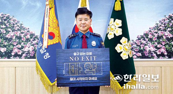 이상률 제주경찰청장이 마약범죄 중독 위험성을 알리는 'NO EXIT' 범국민 릴레이 캠페인에 제주지역 첫 주자로 나섰다.