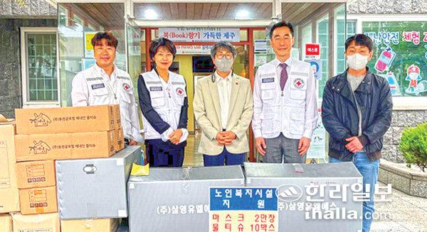 대한적십자사제주특별자치도지사(회장 정태근)는 지난 7일 제주양로원(원장 김진우)과 정혜재활원(원장 이홍기)에 감염병 예방을 위한 마스크 2만장과 물티슈 10박스(200개)를 지원했다.