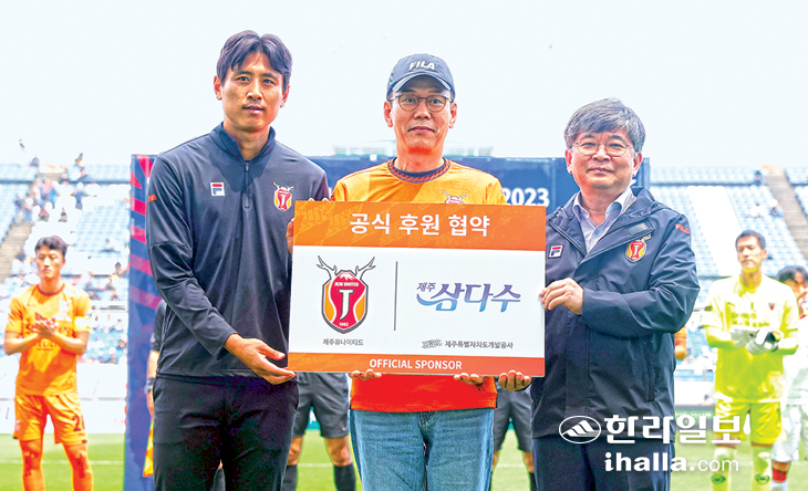 제주유나이티드(이하 제주)는 지난 6일 제주월드컵경기장에서 열린 포항 스틸러스와의 하나원큐 K리그1 2023 11라운드 홈 경기에서 제주특별자치도개발공사와 업무협약식을 가졌다. 이번 공식 후원 체결을 통해 양 측은 제주지역 사회공헌을 위한 다양한 활동을 발굴하고 함께 하기로 약속했다.