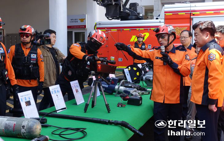 이날 출범식 이후에는 제주소방의 특수 구조 장비에 대한 시연이 진행됐다.