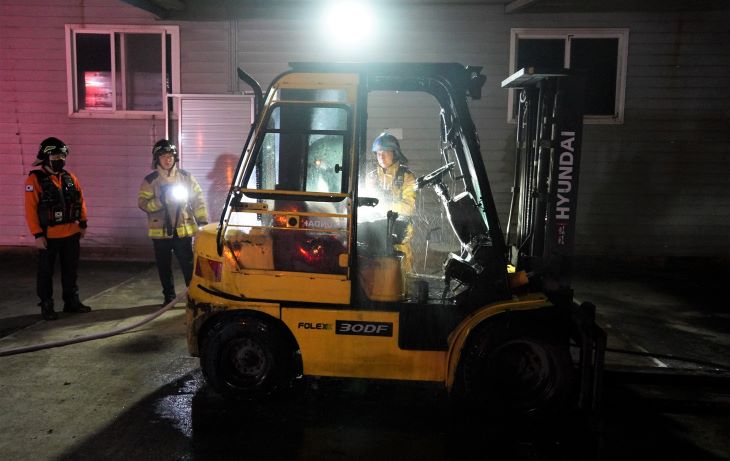[한라일보] 야간 시간대 발생해 자칫하면 대형 화재로 번질 수 있었던 지게차 화재를 의용소방대원이 기지를 발휘해 신속히 진화했다.