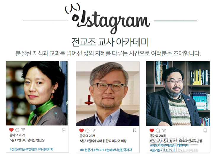 전교조제주지부가 분절된 지식과 교과를 넘어 삶의 지혜를 고민해보는 교사 아카데미를 개설한다. 챗GPT 등 현 시대에 이슈가 되고 있는 3개의 키워드로 구성한 '인(人)스타그램'이다.