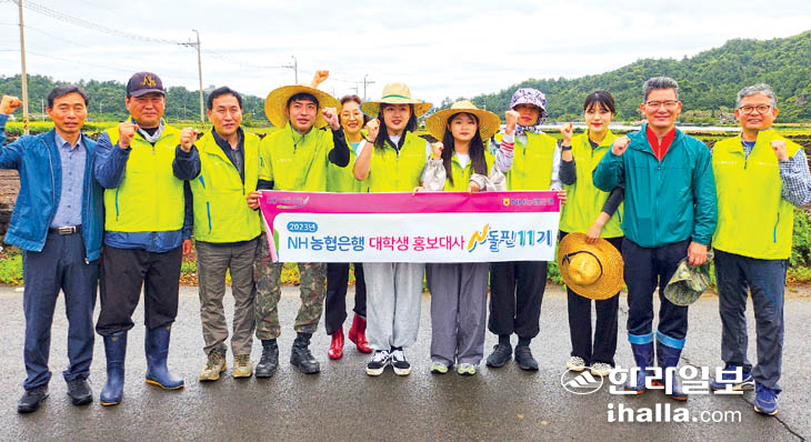 NH농협은행 제주본부(고우일 본부장)는 지난 13일 대학생 봉사단 N돌핀 단원들과 함께 일손 부족으로 어려움을 겪고 있는 서귀포시 대정읍에서 마늘 수확 농촌일손돕기 활동에 참여했다. N돌핀은 농협은행에서 지원하는 대학생 봉사 동아리로 지역사회 곳곳에 행복을 실어나르는 엔드로핀의 역할을 하자는 의미로 금융·경제 교육 등 지역 내 다양한 봉사활동에 참여하고 있다.