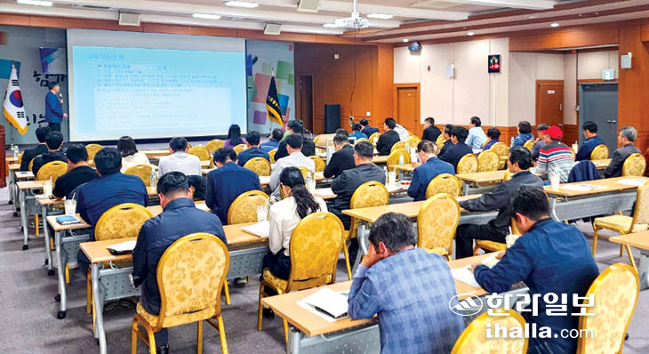 제주상공회의소(회장 양문석)는 지난 11~12일 이틀간 상공회의소 국제회의장과 서귀포 국제천지라이온스협회 회의실에서 지역 중소기업 대표 및 실무자 등 90여명을 대상으로 '2023년도 중대재해 예방 안전보건 교육 설명회'를 개최했다. 이날 광주지방고용노동청 제주산재예방지도팀 조선행 팀장을 강사로 초청해 내년 1월부터 50인 미만 사업장에 확대 적용되는 중대재해처벌법의 주요 내용 등을 설명했다.