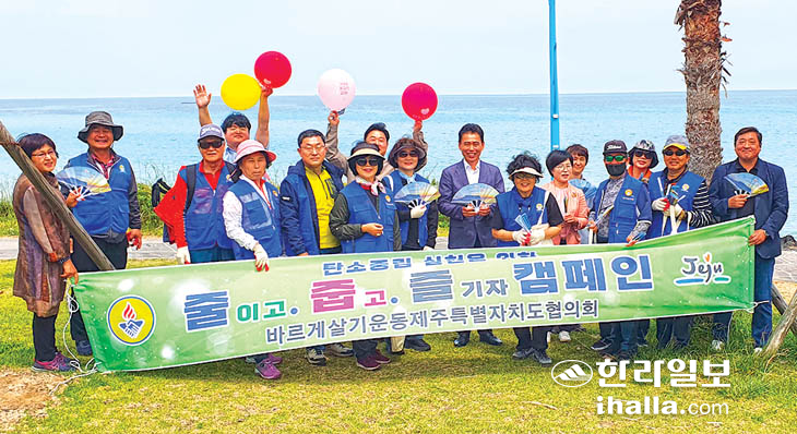 바르게살기운동제주특별자치도협의회(회장 좌중언)는 산악회(회장 정승익) 주관으로 지난 14일 임원 20여명이 참여해 탄소중립 실현을 위한 '줄이고. 줍고. 즐기자 캠페인'을 함덕서우봉과 해수욕장에서 전개했다.