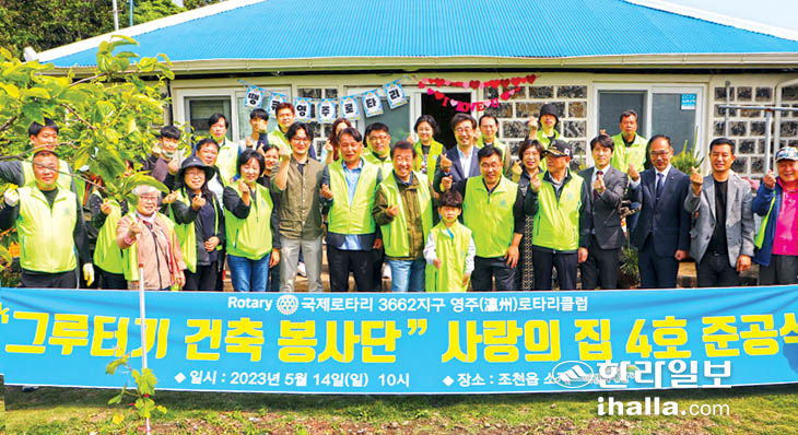 국제로타리클럽 3662지구 영주로타리클럽(회장 홍상기)은 지난 14일 초록우산 어린이재단 제주지역본부(본부장 변정근)와 '사랑의 집짓기 4호 준공식'을 진행했다.