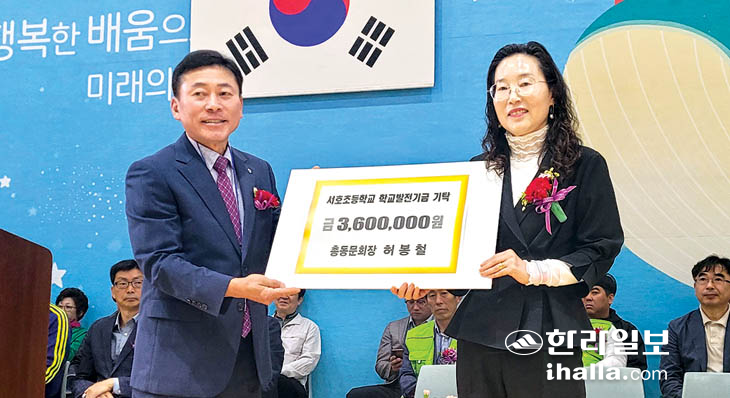 서호초등학교(교장 양정윤)는 지난 13일 한마음체육관에서 열린 제45회 총동문단합체육대회에서 총동문회(회장 허봉철)로부터 학교발전기금 360만원을 기탁받았다.