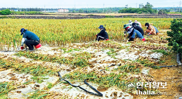 서귀포시는 본격적인 마늘 수확 시기를 맞아 고령농·여성농·독거농 및 질병으로 마늘 수확 인력 확보에 어려움을 겪고 있는 지역 내 취약 농가에 5월 말까지 일손을 지원하고 있다고 17일 밝혔다.