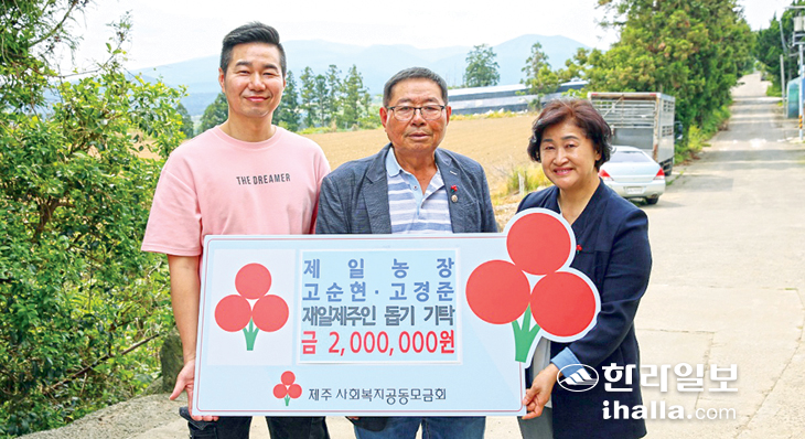 고순현(제일농장 회장)·고경준(제일농장 대표) 부자는 지난 17일 제일농장에서 재일제주인 돕기 성금 200만원을 제주사회복지공동모금회(회장 강지언)에 기탁했다.