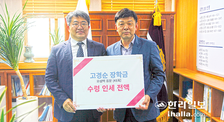 오 씨는 모친인 고경순 씨가 아버지를 일찍 여의면서 학업을 접고 가족들을 위해 평생 해녀의 삶을 살아오면서도 배움에 대한 열정을 간직해 온 것에 대한 존경의 의미를 담아 장학금을 전달하게 됐다고 밝혔다.