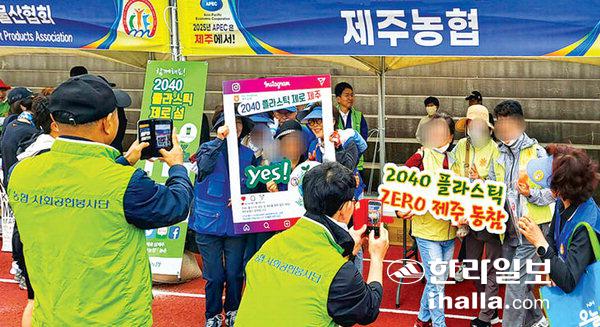 농협제주본부(본부장 윤재춘)는 지난 21일 제주시 구좌읍 구좌종합운동장에서 열린 제주국제관광마라톤대회에서 제주도에서 추진하고 있는 '2040플라스틱 제로섬 홍보 캠페인'을 펼쳤다.
