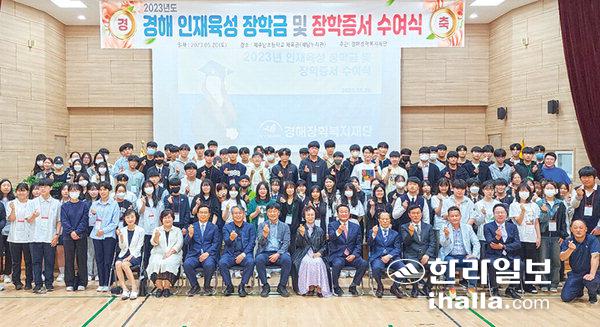 청소년들에게 꿈과 희망을 펼쳐온 경해장학복지재단이 지난 20일 제주남초등학교 제남누리관에서 '2023 인재육성 장학금 및 장학증서 수여식'을 개최했다.