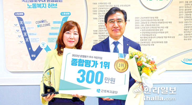 근로복지공단 제주어린이집(원장 안명순)은 2022년 공공직장어린이집 운영평가에서 종합순위 1위를 달성했다고 23일 밝혔다.