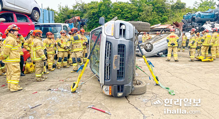 서부소방서(서장 김영호)는 지난 22일부터 이틀간 서귀포시 대정읍 안전폐차장에서 교통사고 발생 대비 특별구조훈련을 실시했다.