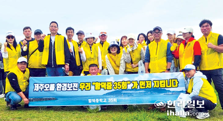 함덕중학교 35회 동창회(회장 박진일)는 지난 21일 회원 30여명이 참석한 가운데 본교 주변에 위치한 서우봉과 함덕해수욕장 일대에서 환경정화 활동을 실시했다.