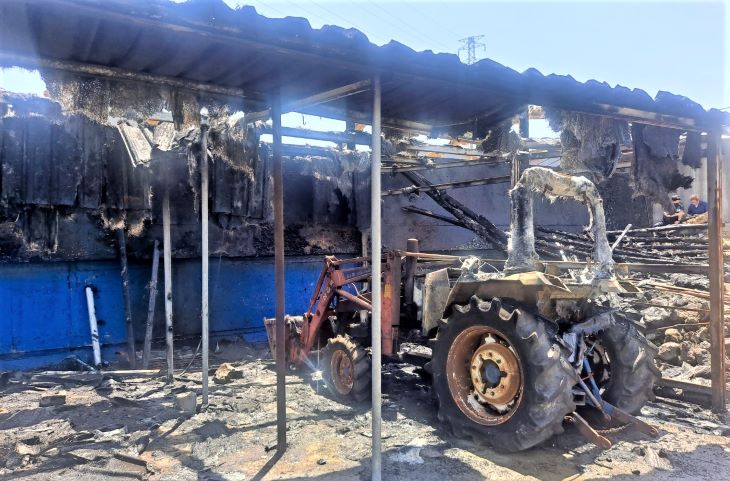 지난 23일 제주시 한림읍의 양돈장에서 발생한 화재로 소실된 트랙터와 시설물의 모습. 제주서부소방서 제공