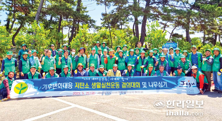 새마을지도자제주특별자치도협의회(회장 안창준)는 25일 이호해수욕장 주변에 기후변화에 적극 대응하고 탄소중립 실천을 위해 지역주민 중심의 나무심기를 지속적으로 실시해 탄소 흡수원을 확충하고 미세먼지 저감 등 대기질 개선을 선도하고자 '기후변화대응 저탄소생활 실천운동 결의대회 및 나무심기' 운동을 전개했다.