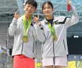 수영경영에서도 깜짝 메달이 나왔다. 이날 문수실내수영장에서 열린 수영(경영) 여자13세 이하부 자유형 50m 결승전에서 조유진(중문초 6)이 28초48의 기록으로 서울 선수들에 이어 3위로 터치패드를 찍었다. 조유진은 앞서 29일 치러진 혼계영 200m에서도 동료들과 동메달을 합작했다.