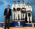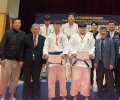 8일 강원도 양구문화체육회관에서 열린 제27회 전국청소년유도선수권 남자부 -60㎏급에서 우승을 차지한 오상우가 강만순 제주도유도회장(왼쪽)과 현후익 지도자와 기념촬영을 하고 있다.