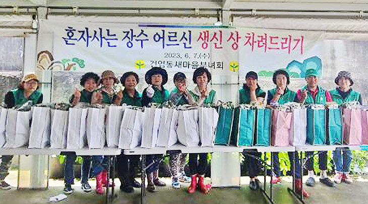 제주시 건입동 새마을 남녀 지도자(회장 문명선, 소신선)는 지난 7일 회원 15명이 참여해 혼자 사는 장수 어르신들에게 미역국, 잡채, 떡, 과일 등 생신상 음식을 전달했다.