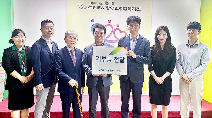 한국주택금융공사(지사장 정종태)는 지난 8일 서귀포시장애인종합복지관(관장 윤보철)에 취약계층 및 재가장애인을 위한 온누리상품권 100매를 전달했다.