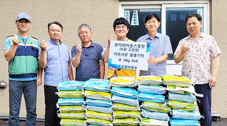 관덕라이온스클럽(회장 고종범)은 지난 15일 제주시 우도면에 취약계층을 위한 쌀 50포(175만원 상당)를 기부했다.
