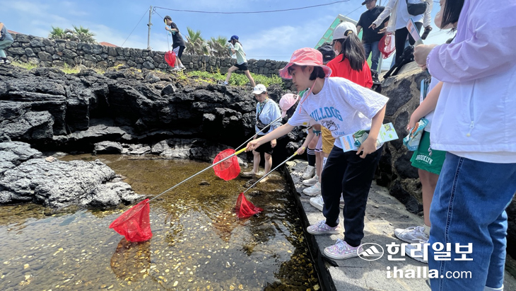 이 일환으로 한라일보와 제주도개발공사, 제주지질연구소, 제주환경운동연합은 공동으로 숨골 보전을 위한 '제주 삼다수와 떠나는 숨골탐방'프로그램을 진행했다. 이날 프로그램에는 인화초등학교 3~6학년 학생 12명과 담당 교사 등 20여명이 참여했다. 인화초등학교(교장 윤정애)는 올해 기후변화환경교육연구학교로 선정돼 자원순환과 기후변화 해결을 위한 교육을 진행하고 있다.