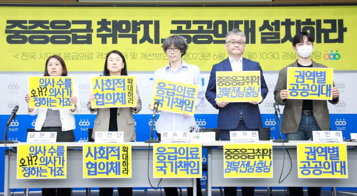 경실련은 응급의료 개선방안으로 ▷중증응급환자 최종치료 위한 권역응급센터 내 전담 전문의 확보 ▷중증응급환자의 권역센터 당연 배치 의무화 ▷상급종합병원의 권역센터 당연 지정 제도화 등을 제시했으며, 중증응급의료 공백 개선을 위한 장기 해결 방안으로 ▷권역별 공공의대 신설을 포함한 의대정원 최소 1000명 증원 ▷의료현안협의체 해체 및 사회적 논의구조로 확대·전환 ▷국회의 즉각 공공의대법 제정 등을 요구했다.