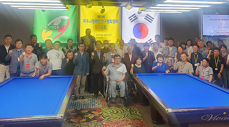 제3회 제주시장애인당구협회장배 당구대회가 지난 18일 제주시내 MVP당구장에서 열렸다. 시장애인당구협회(회장 김영남)가 주최한 이 대회는 일반부와 동호인부로 나눠 치러졌다.