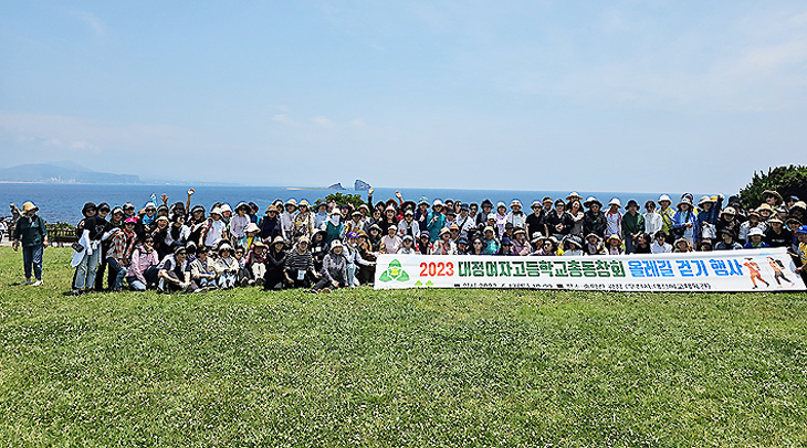 대정여고총동창회(회장 고형순)는 지난 17일 송악산 광장에서 선 후배 수선화인 360여 명이 모인 가운데 '보고만 있어도 좋 은 벗! 함께 걸으면 더 좋은 벗!' 이란 주제로 2023 행복한 올레길 걷기 행사를 개최했다.