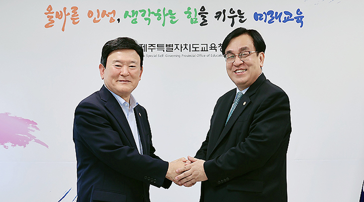 이어 정 이사장은 오전 10시에 제주학교안전공제회와 제주특별자치도교육청을 방문, 김광수 교육감과 강동선 행정국장을 만나 "제주지역 유·초·중·고등학교 학생들의 안전한 학교생활과 행복한 학교생활을 위해서 중앙회가 적극 지원하겠다"며 "밀착형 학교안전사고 예방연구와 학생안전사고 통계를 다각적으로 분석해 안전사고예방 교육자료로 제공하겠다"고 했다.