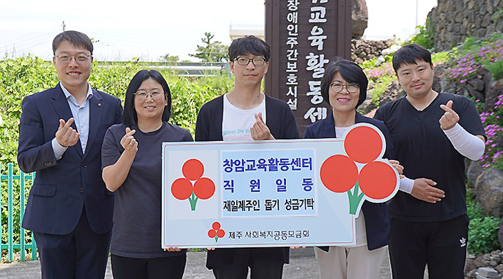제주시 애월읍 소재 장애인복지시설 창암교육활동센터(센터장 박영재) 직원 일동은 최근 어려운 환경의 재일제주인들을 사용해 달라며 제주사회복지공동모금회(회장 강지언)에 성금을 기탁했다.