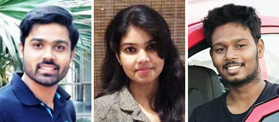 | 사진 왼쪽부터 스와프닐 쉬탈 나데카, 쿠슘 샤마, 아비세 가프리얀 |