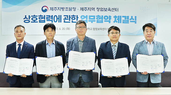 제주지방조달청(청장 황광하)은 20일 제주지역 4개 대학 창업보육센터 간 업무교류와 상생발전을 위해 업무협약(MOU)을 체결했다고 밝혔다.