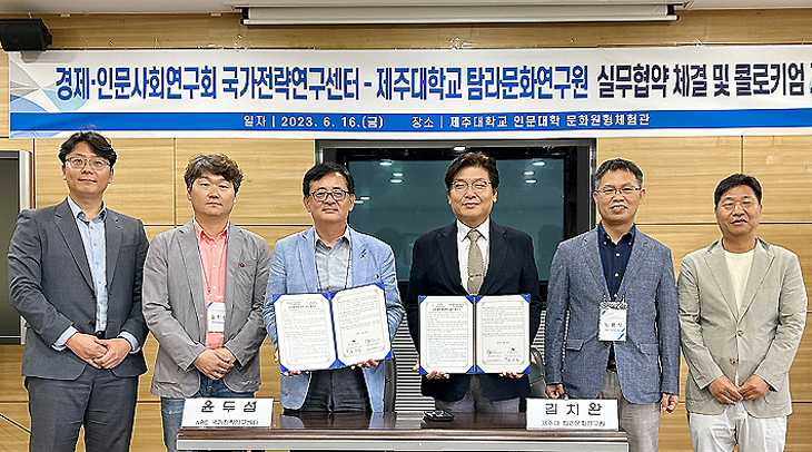 제주대학교 탐라문화연구원(원장 김치완)과 경제·인문사회연구회(이사장 정해구) 국가전략연구센터는 지난 16일 제주대에서 업무협약을 체결했다.