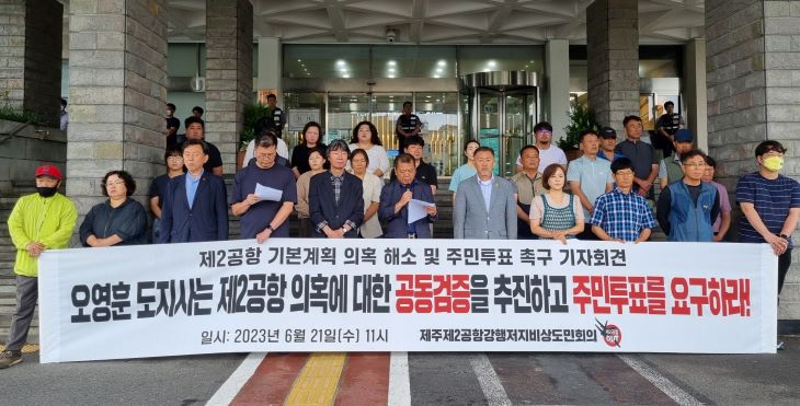 이어 "서명뿐만 아니라 언론사 여론조사에서도 주민투표를 해야 한다는 의견이 절반이고 공론조사를 포함하면 70% 이상의 도민이 자기 결정권 행사를 요구하고 있다"고 덧붙였다.