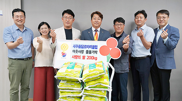 국제로타리3662지구 제주돌담로타리클럽(회장 문경한)은 지난 20일 제주하나센터에서 어려운 이웃에게 전달해 달라며 사랑의 쌀 200㎏을 제주사회복지공동모금회(회장 강지언)에 기탁했다.