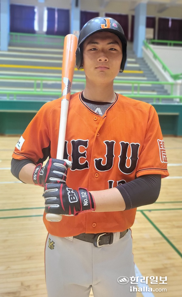 [한라일보]지난 24일 제주종합경기장 야구장. 제주고와 부산정보고의 고교야구주말리그 후반기(부산·제주권역) 4차전이 열렸다. 2회말 제주고의 공격이었다. 8번 타자로 나선 김보형. 김보형은 부산정보고의 포수보다 머리 하나가 더 있을 정도로 피지컬은 뛰어나 보였다. 선수등록 명부엔 190㎝ 88㎏으로 기록돼 있다. 경기장을 찾은 이들은 한결같이 못 보던 선수여서 다른 지역 학교에서 전학 온 선수로 인식했다. 하지만 제주고에서 계속 야구를 했으며, 이날은 지명타자로 나섰다. 첫 타석은 삼진이었다. 그리고 김보형은 3회 4-2로 쫓기던 상황에서 우전안타로 타점을 올렸다. 올 시즌 두 번째 안타와 함께 첫 타점을 기록하는 성과(?)를 거뒀다.