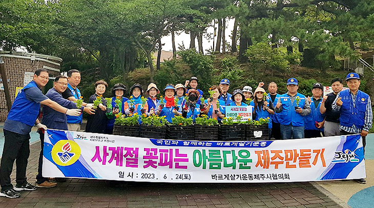 바르게살기운동제주시협의회(회장 강대규)와 화북동위원회(위원장 고희철)는 지난 24일 화북동 망동산에 메리골드를 심어 아름다운 제주만들기에 앞장섰다.