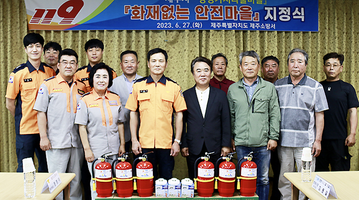 제주소방서는 지난 22일 해안마을을 시작으로 26~27일 사평마을과 영평상동마을에서 2023년 '화재없는 안전마을' 지정식을 개최했다.