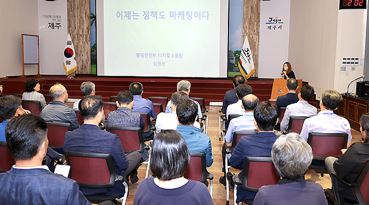 제주시는 지난 22일부터 27일까지 총 5회에 걸쳐 '상반기 공직자 홍보 역량 강화 교육'을 실시했다. 이번 교육은 현직 기자들이 강의를 맡아 기존 대규모 집합 교육에서 탈피해 읍면동을 포함한 본청 국 단위로 세분화해 차수별 50명 안팎의 공직자를 대상으로 진행해 효과성을 높였다. 마지막 날에는 최영선 행정안전부 온라인 대변인을 강사로 초청해 부서장 이상 간부공무원을 대상으로 SNS 등을 활용한 디지털 홍보의 중요성을 교육했다.