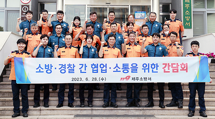 제주소방서(서장 양인석)는 28일 제주소방서 2층 대회의실에서 소방·경찰 간 협업·소통 간담회를 개최했다. 이날 간담회는 제주소방서와 제주동부경찰서, 제주서부경찰서 직원 20여명이 참여해 긴급 출동 시 현장에서 직접 대면하는 직원들의 원활한 협조체계 구축과 효율적 대응 방안들을 모색하는 토론을 진행했다.