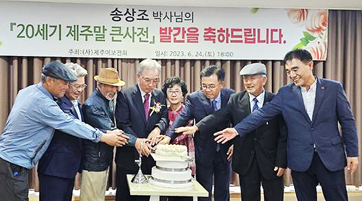 (사)제주어보전회(이사장 양창용)는 지난 24일 아젠토피오렌컨벤션에서 회원 100여 명이 참석한 가운데 송상조 박사의 '20세기 제주말 큰사전' 출판 기념회를 열었다.