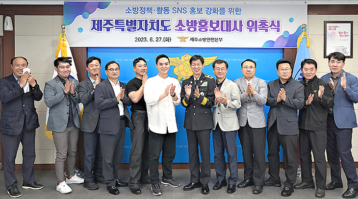 제주소방안전본부(본부장 김수환)는 지난 27일 본부 대회의실에서 소방홍보대사 위촉식을 갖고 도민과 관광객 안전을 위한 다양한 안전정보 콘텐츠를 공유·제작하는 협업에 나섰다.
