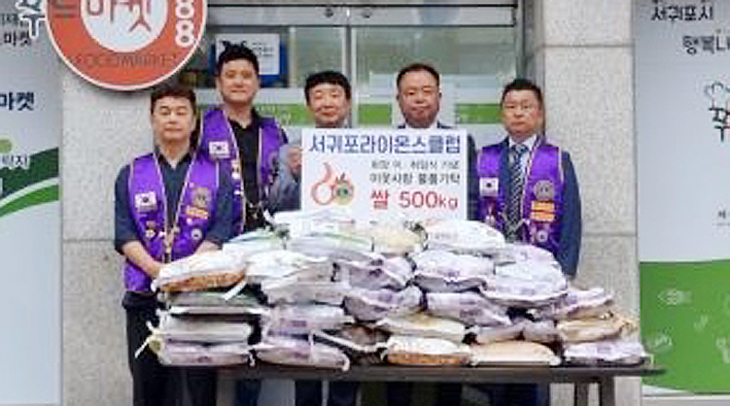 서귀포라이온스클럽(취임회장 김대윤)은 회장 이·취임식 기념 쌀 500kg을 어려운 이웃에게 전달해 달라며 행복나눔 푸드마켓(센터장 김보성)을 방문해 기탁했다.